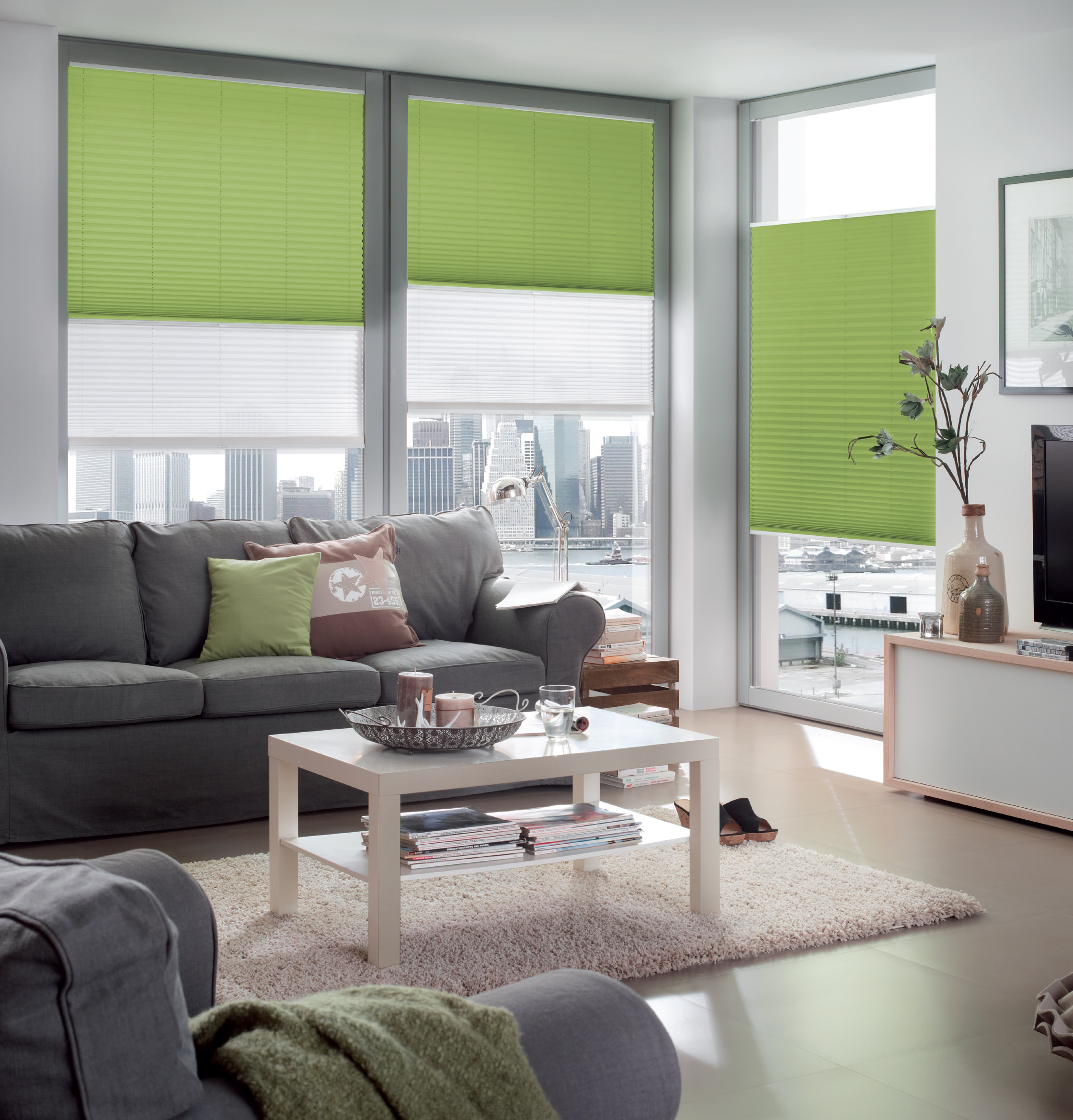 Mit einer Faltenbreite von 20 mm/25 mm und einer umfangreichen Typenvielfalt, lassen sich alle Fensterformen harmonisch gestalten.